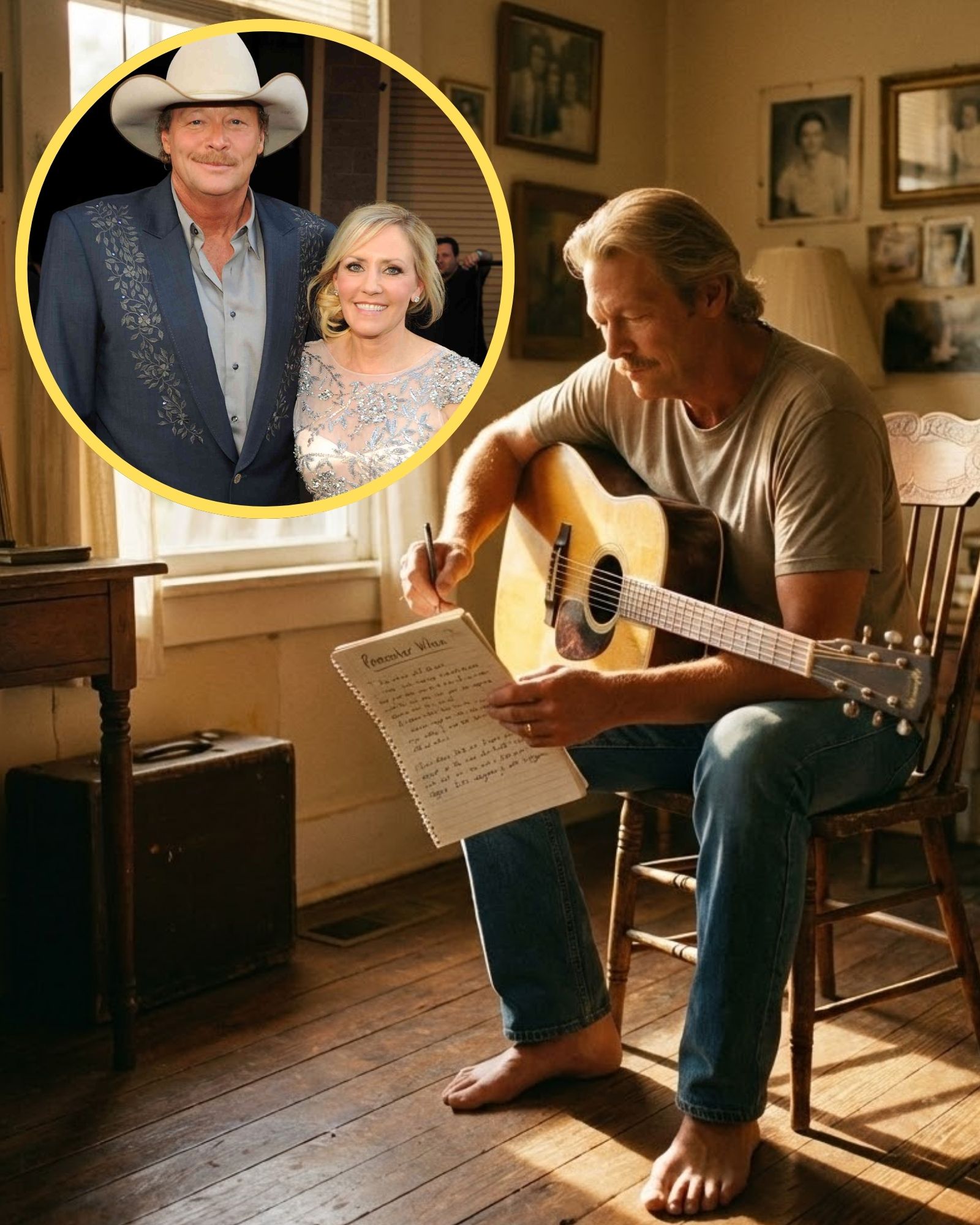 In those quiet moments, he wasn’t the Hall of Famer. He wasn’t the man who filled stadiums or defined an era of country music. He was just Alan — barefoot in a small Georgia room, singing his life back to the woman who had lived every line with him. Every road. Every sacrifice. Every season when the future felt uncertain.